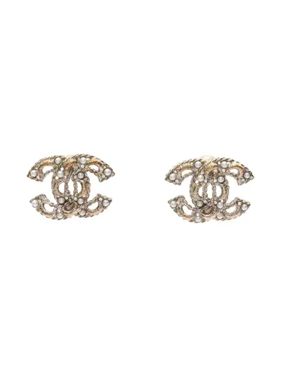 1986-1988 gold faux pearl embellishment coco mark design post-back fastening Condition: GOOD. This previously owned and used item is in good condition with minimal signs of use. This may include fading of material or plating and scratches. These earrings come as a pair. Normal everyday use and external agents may reduce the lustre of gemstones and gold surfaces. To maintain, use specific, non-abrasive products specially meant for cleaning jewellery.