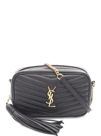 2000s black chevron quilting gold-tone logo lettering chain shoulder strap tassel detail zip fastening internal slip pockets