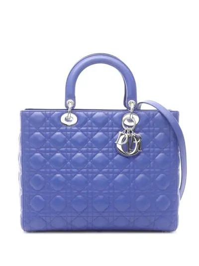 quilted lambskin leather body silver-tone hardware flat leather top handles detachable flat leather shoulder strap top zip closure interior zip pocket blue Inclusions: shoulder strap. Condition: EXCELLENT. This previously owned item is in near-perfect condition with no signs of damage or use. Due to the exclusivity of this item and its limited availability, processing and delivery might take longer than usual. Please refer to the photos on this product page for a detailed view of the item, including any damages declared.