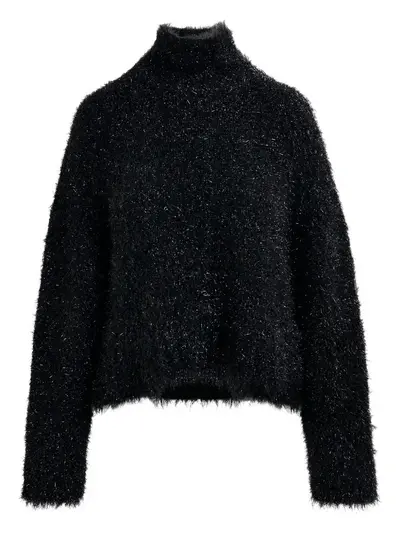 black metallic fibres turtleneck pussy-bow tie textured finish