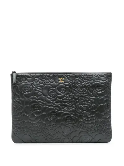 embossed lambskin leather body top zip closure black Serial Number: 18074370 This item has no inclusions. Condition: EXCELLENT. This previously owned item is in near-perfect condition with no signs of damage or use. Please refer to the photos on this product page for a detailed view of the item, including any damages declared.