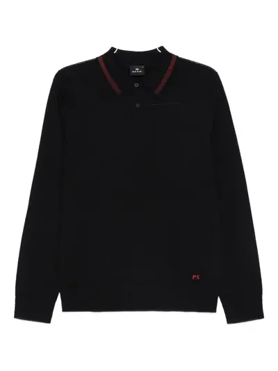 black polo collar logo detailing long sleeves button fastening ribbed knit