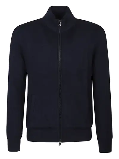 midnight blue zip fastening high neck long sleeves ribbed trims