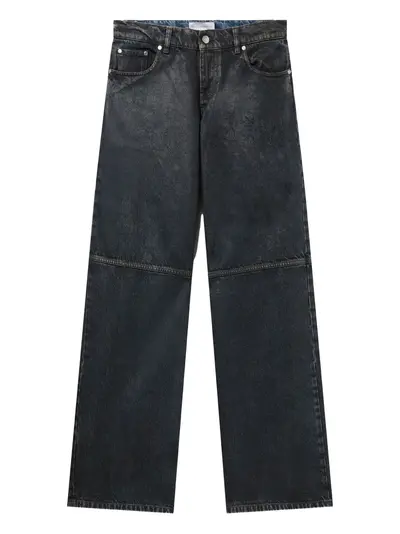 blue faded effect panelled design belt loops classic five pockets button and fly fastening