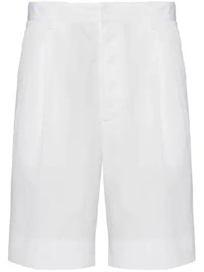 white cotton poplin texture logo patch to the rear pressed crease pleat detailing dart detailing belt loops mid-rise wide leg thigh-length two side inset pockets two rear welt pockets concealed front button, hook and zip fastening straight hem unlined