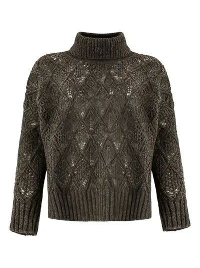 grey openwork design roll neck long sleeves ribbed cuffs ribbed hem