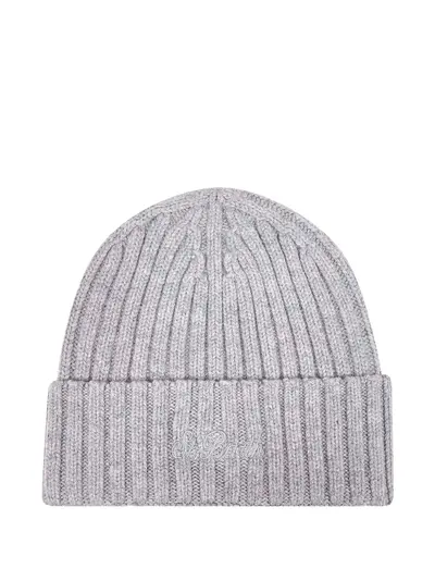 grey ribbed knit turn-up hem tone-on-tone embroidery