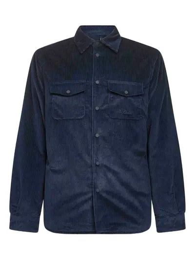 blue corduroy texture snap-buttoned placket shirt collar long sleeves chest pockets