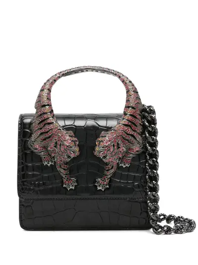 black crocodile effect tiger embellishment chain strap single top handle internal slip pocket
