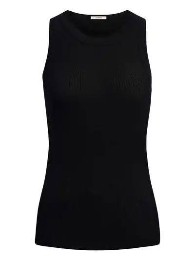black ribbed knit round neck sleeveless
