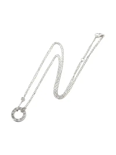 2010s 18kt white gold polished finish delicate chain circular pendant signature screw detailing bezel-set round-cut white diamond lobster-claw fastening Normal everyday use and external agents may reduce the lustre of gemstones and gold surfaces. To maintain, use specific, non-abrasive products specially meant for cleaning jewellery. Condition: GOOD. This previously owned and used item is in good condition with minimal signs of use. This may include fading of material or plating and scratches.