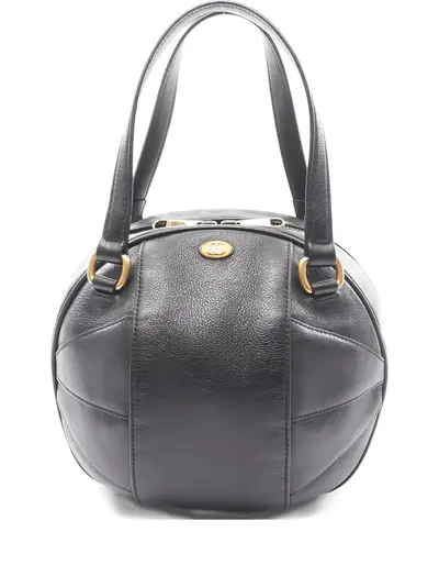 2010s black leather top handles gold-tone hardware zip fastening round shape Condition: GOOD. This previously owned and used item is in good condition with minimal signs of use. This may include fading of material or plating and scratches.