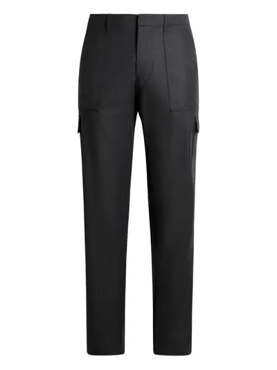 black wool cargo pockets belt loops concealed fastening rear patch-pockets