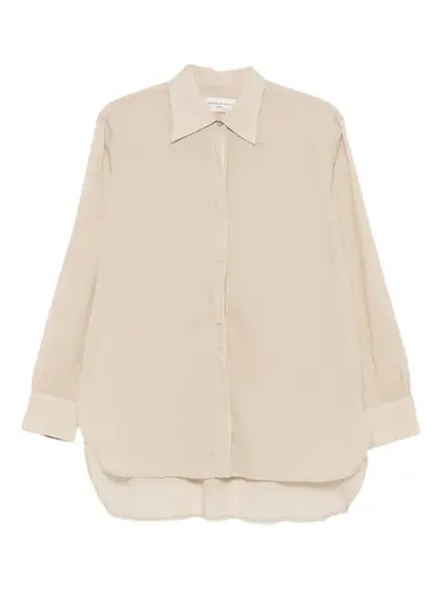 beige front button fastening long sleeves buttoned cuffs curved hem
