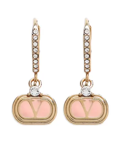 gold-tone light pink brass construction VLogo Signature oval-shaped plaque crystal embellishments These earrings come as a pair.