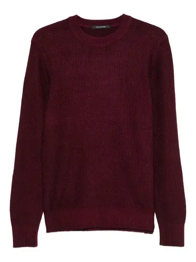 red knitted texture crew neck long sleeves ribbed hem ribbed cuffs