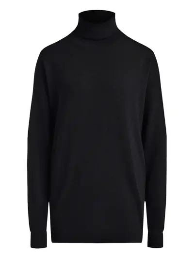 black merino wool-cashmere blend turtleneck long sleeves knitted construction ribbed trim