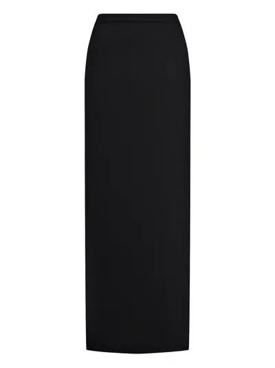 black elasticated waistband rear slit long length merino wool-cashmere blend