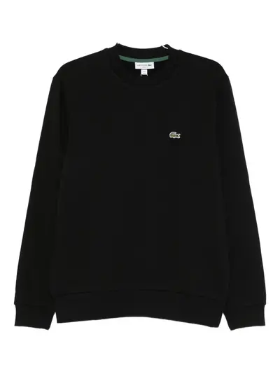 black cotton blend logo appliqué crew neck long sleeves ribbed cuffs and hem