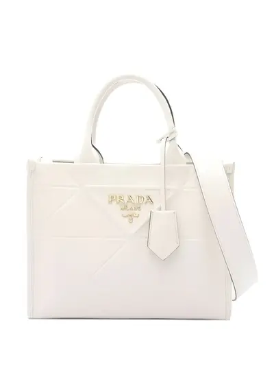 2010s off white leather topstitching top handle detachable shoulder strap gold-tone logo lettering Condition: GOOD. This previously owned and used item is in good condition with minimal signs of use. This may include fading of material or plating and scratches.