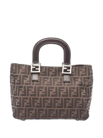 2010s brown zucca pattern leather handle silver-tone hardware top handle internal zip pocket Condition: GOOD. This previously owned and used item is in good condition with minimal signs of use. This may include fading of material or plating and scratches.