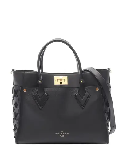 2010s black Monogram detail top handles detachable shoulder strap gold-tone hardware internal slip pocket Condition: GOOD. This previously owned and used item is in good condition with minimal signs of use. This may include fading of material or plating and scratches.