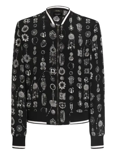 black all-over print zip fastening striped ribbed trims long sleeves round neck