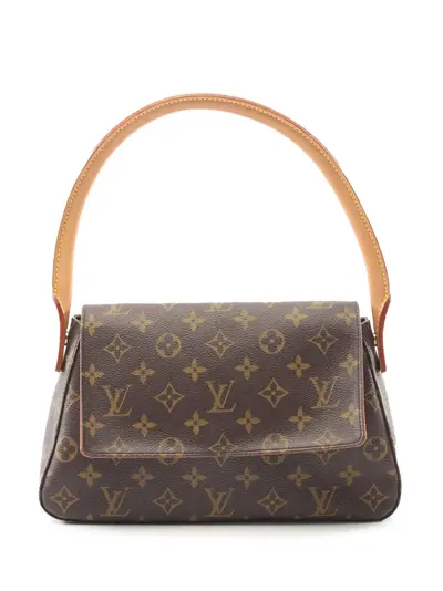 monogram canvas body rolled vachetta leather handle flap with magnetic snap closure interior zip pocket brown Serial Number: DU0033 This item has no inclusions. Condition: EXCELLENT. This previously owned item is in near-perfect condition with no signs of damage or use. Due to the exclusivity of this item and its limited availability, processing and delivery might take longer than usual. Please refer to the photos on this product page for a detailed view of the item, including any damages declared.