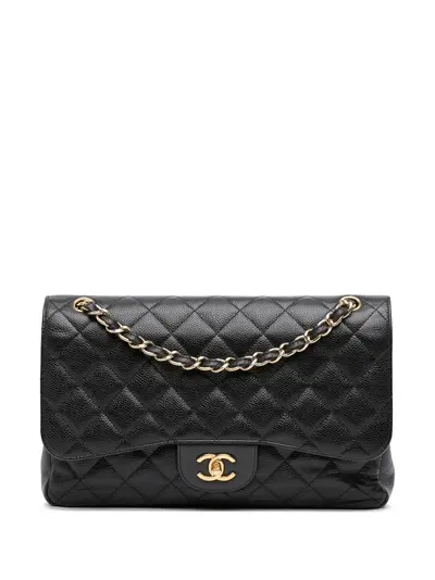 quilted caviar leather body leather woven chain straps double top flap with CC turn-lock closure exterior back slip pocket interior zip and slip pockets black Serial Number: 16838666 This item has no inclusions. Condition: GOOD. This previously owned and used item is in good condition with minimal signs of use. This may include fading of material or plating and scratches. Please refer to the photos on this product page for a detailed view of the item, including any damages declared.