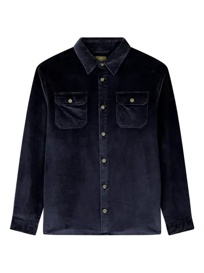 blue textured panel front button fastening chest flap pockets long sleeves classic collar