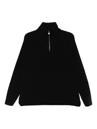 black funnel neck half zip fastening ribbed knit long sleeves