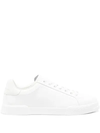 white calf leather lace-up fastening low-top style flat sole branded heel tab