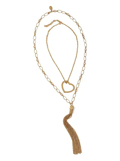 gold chain detail heart pendant tassel detail lobster clasp fastening layered design