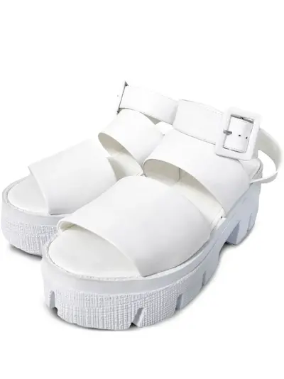 white platform sole ankle strap buckle fastening double strap open toe