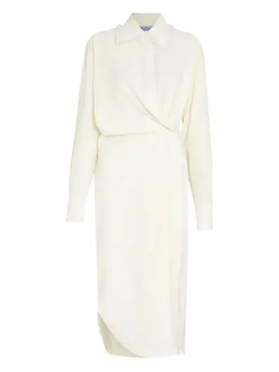 off-white knotted front shirt collar long sleeves asymmetrical hem