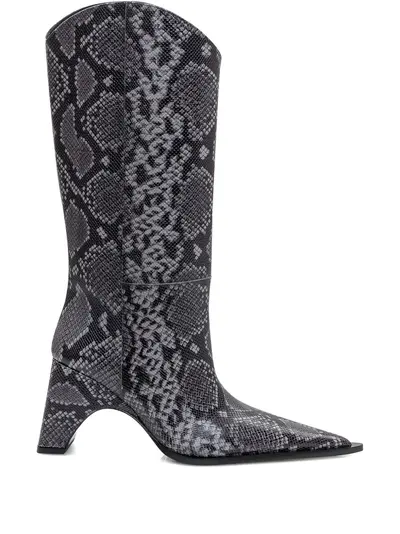 grey snakeskin effect pointed toe block heel pull-on style