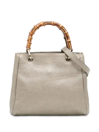 leather body bamboo handles detachable strap open top with a magnetic closure interior zip and slip pockets gold Serial Number: 336032 520981 Inclusions: shoulder strap. Condition: FAIR. This previously owned and used item is in fair condition with visible signs of use. This may include fading of material or plating, loose stitches, discolouration, patina or heavy scratches. Declared Damages: Exterior Top Feature(s) Moderate Cut Stitching. Exterior Top Feature(s) Moderate Loose Stitching. Please refer to the photos on this product page for a detailed view of the item, including any damages declared.
