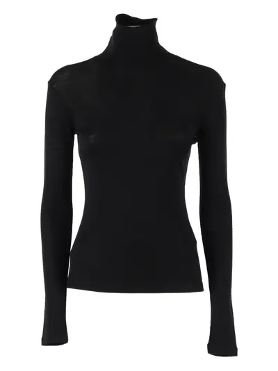 black turtleneck long sleeves straight hem fine knit logo at the back