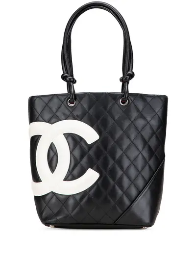 quilted leather body and interlocking Cs rolled leather handles top zip closure exterior back slip pocket interior zip pockets black Serial Number: 9391821 This item has no inclusions. Condition: GOOD. This previously owned and used item is in good condition with minimal signs of use. This may include fading of material or plating and scratches. Please refer to the photos on this product page for a detailed view of the item, including any damages declared.