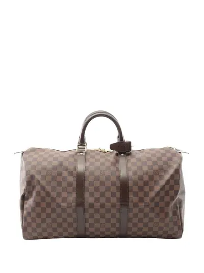 damier ebene body with leather trim rolled leather handles top zip closure brown Serial Number: MB3067 This item has no inclusions. Condition: EXCELLENT. This previously owned item is in near-perfect condition with no signs of damage or use. Due to the exclusivity of this item and its limited availability, processing and delivery might take longer than usual. Please refer to the photos on this product page for a detailed view of the item, including any damages declared.