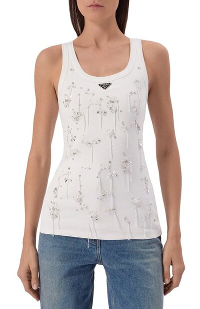 Хлопковая майка Prada 39546r/13x6 (белый, lpn31028199)