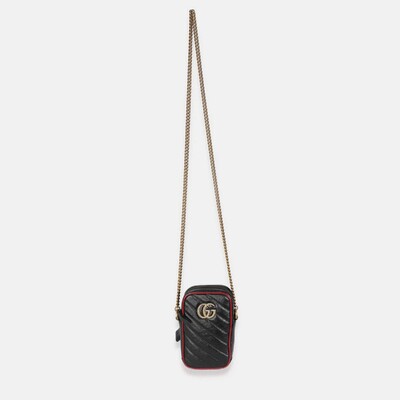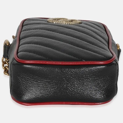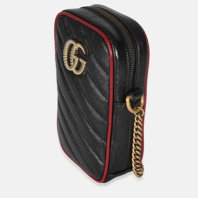 Gucci’s Mini GG Marmont Crossbody in Red and Black Calfskin Matelassé exudes contemporary luxury. Its compact, quilted design with signature GG detailing makes it a chic companion for elevated everyday looks.