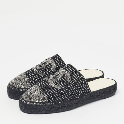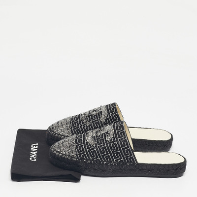 Chanel Black/White Tweed CC Espadrille Mules Size 36 1225419 (чёрный, lpn31028589)