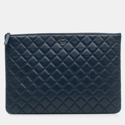 Chanel Blue Large Quilted Lambskin O Case Clutch 1227135 - 1