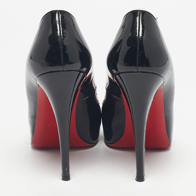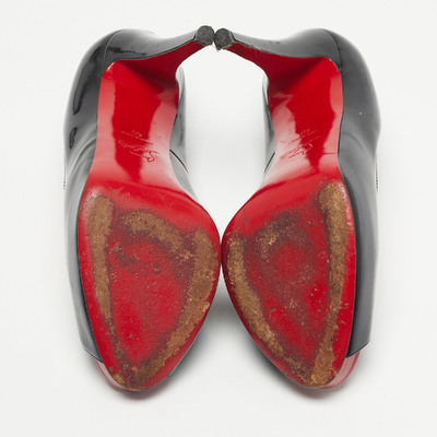 Stride through the day with confidence by adorning this pair of Christian Louboutin pumps. Created from patent leather, its well designed curves will elegantly outline your feet. The 13cm heels and platforms of these peep toe shoes will take your fashion sense to new heights.