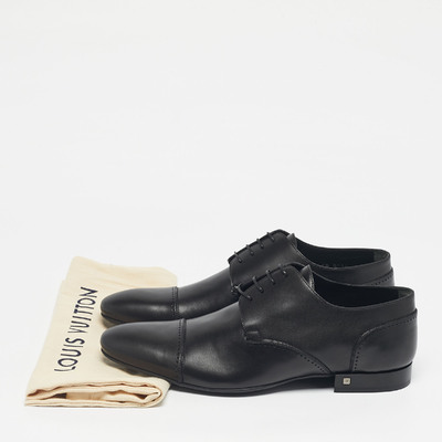 Crafted in supple black leather, these Louis Vuitton lace up derbies epitomize classic menswear elegance. The streamlined shape is complemented by subtle branding, ensuring both versatility and sophistication. Ideal for tailored ensembles, they represent refined investment dressing.