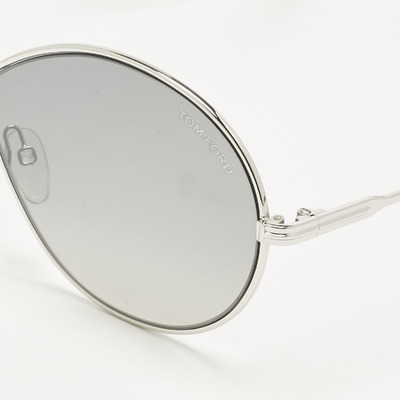 Tom Ford’s Rania 02 sunglasses sweep into an oversized frame, finished in a sleek silver tone that catches the light with subtle shine. Grey gradient lenses soften the look while bearing the discreet Tom Ford logo, a signature touch of luxury. Designed for presence and polish, they bring a cinematic finish to everyday sunwear.