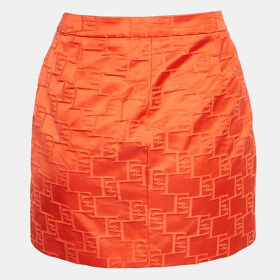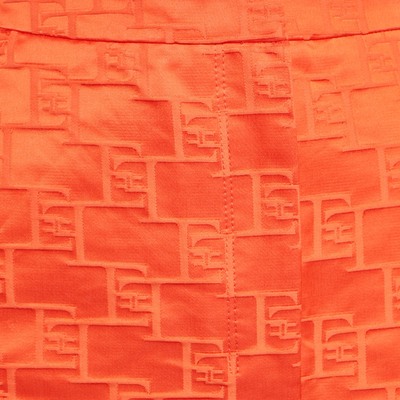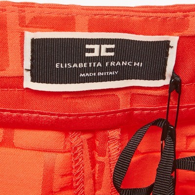 This mini skirt by Elisabetta Franchi features a bright orange jacquard satin finish for a statement making effect. Structured yet chic, it pairs beautifully with neutral tops or coordinating blouses. A bold piece for evening or festive occasions.
