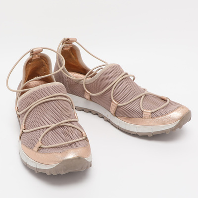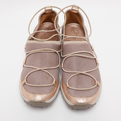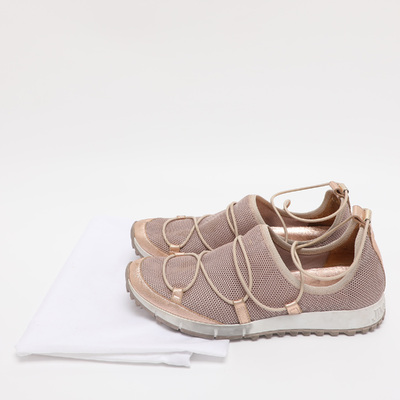 Ready to offer comfort and style, this pair of sneakers by Jimmy Choo will make a fantastic addition to your shoe collection. Theyve been crafted from mesh and leather trims and styled with lace ups on the uppers. Don these slip on sneakers with your favorite denim.
