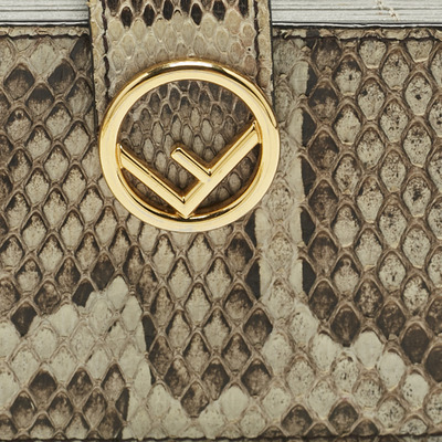 Exotic python meets smooth leather in a grey palette, finished with the gleaming “F is Fendi” logo. Complete with accordion slots, it offers luxury in every detail.